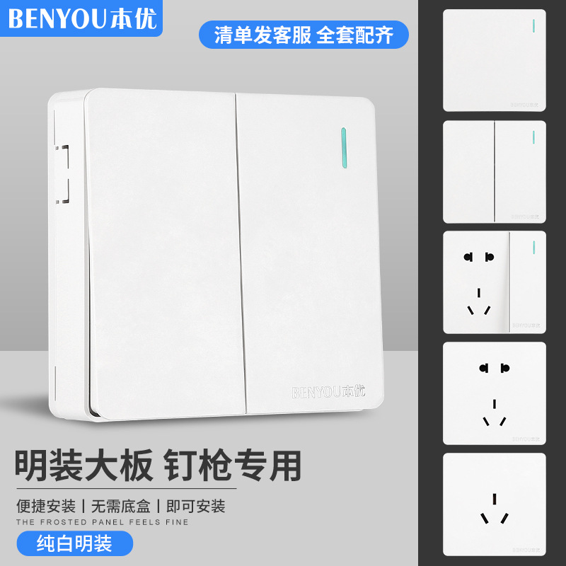 明装超薄壁スイッチソケット明線パネル一開五孔二開単控明箱15孔十穴プラグ