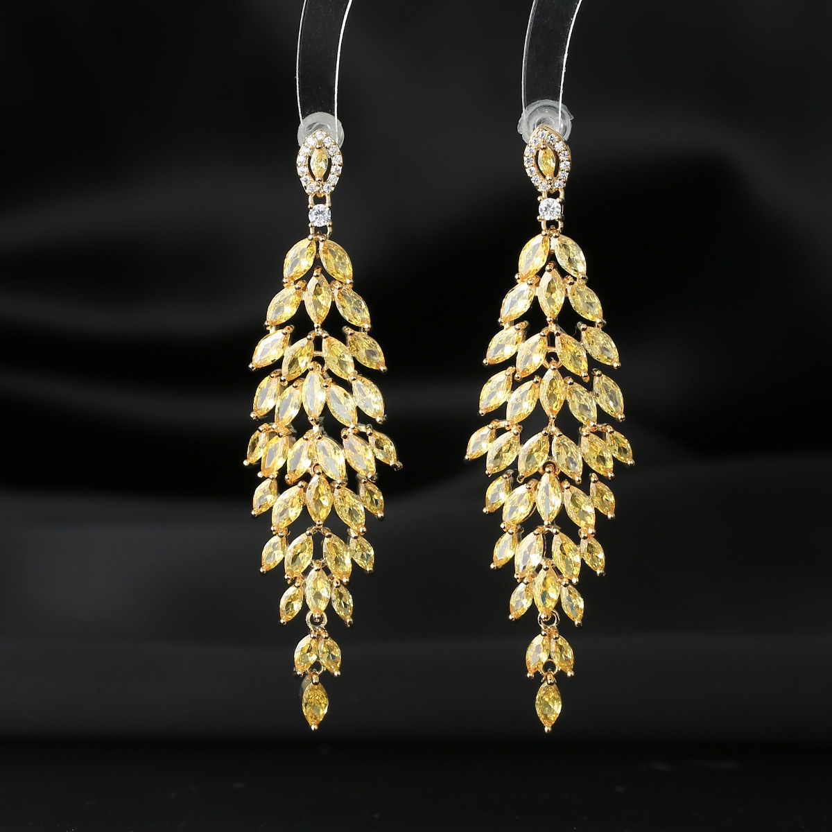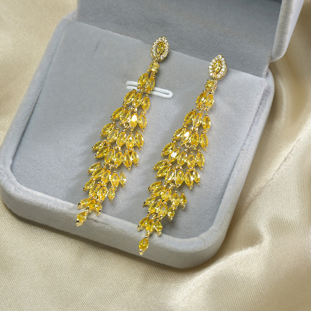 欧米の重工業の黄金のジルコニウムは耳飾りをはめ込んで誇張して個性の華麗なジルコンのイヤリングの女性の鋼の針の長いタイプのピアスを飾ります。