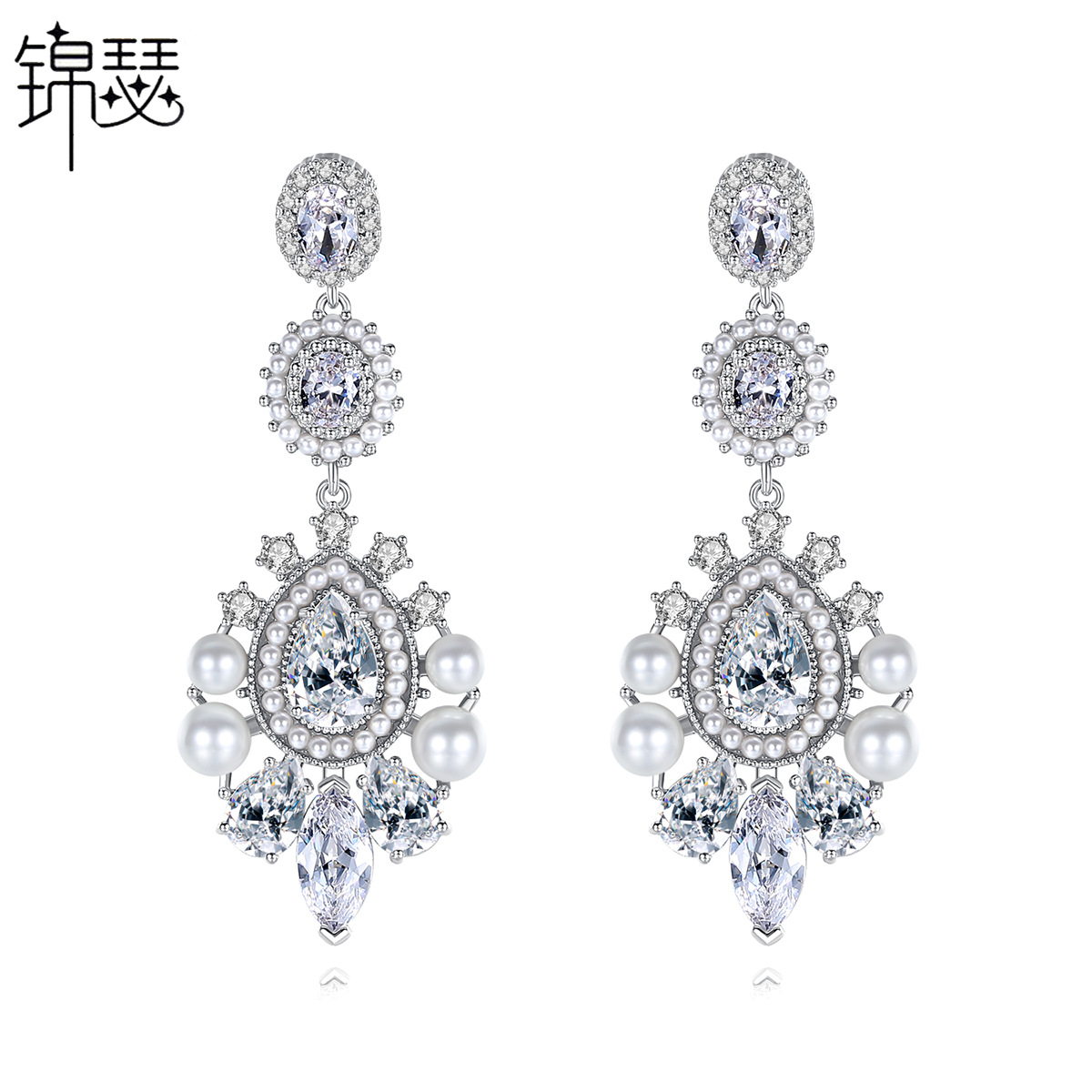 錦瑟ジルコン花嫁ピアス真 � � メッキファッション気質宴会欧米風イヤリング大気女子耳飾り