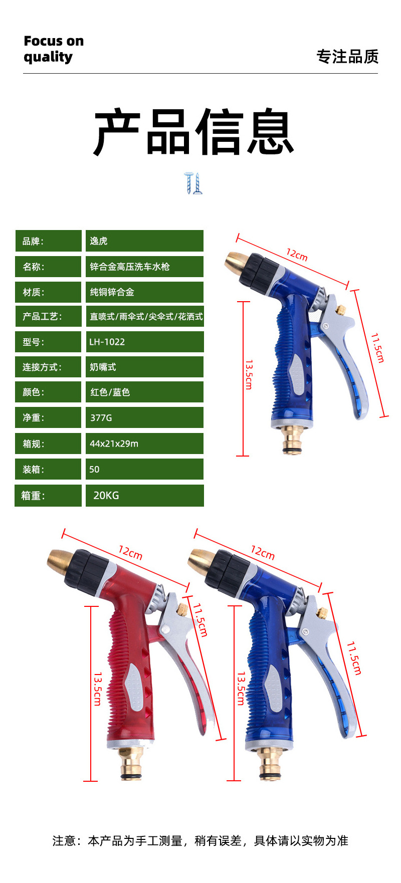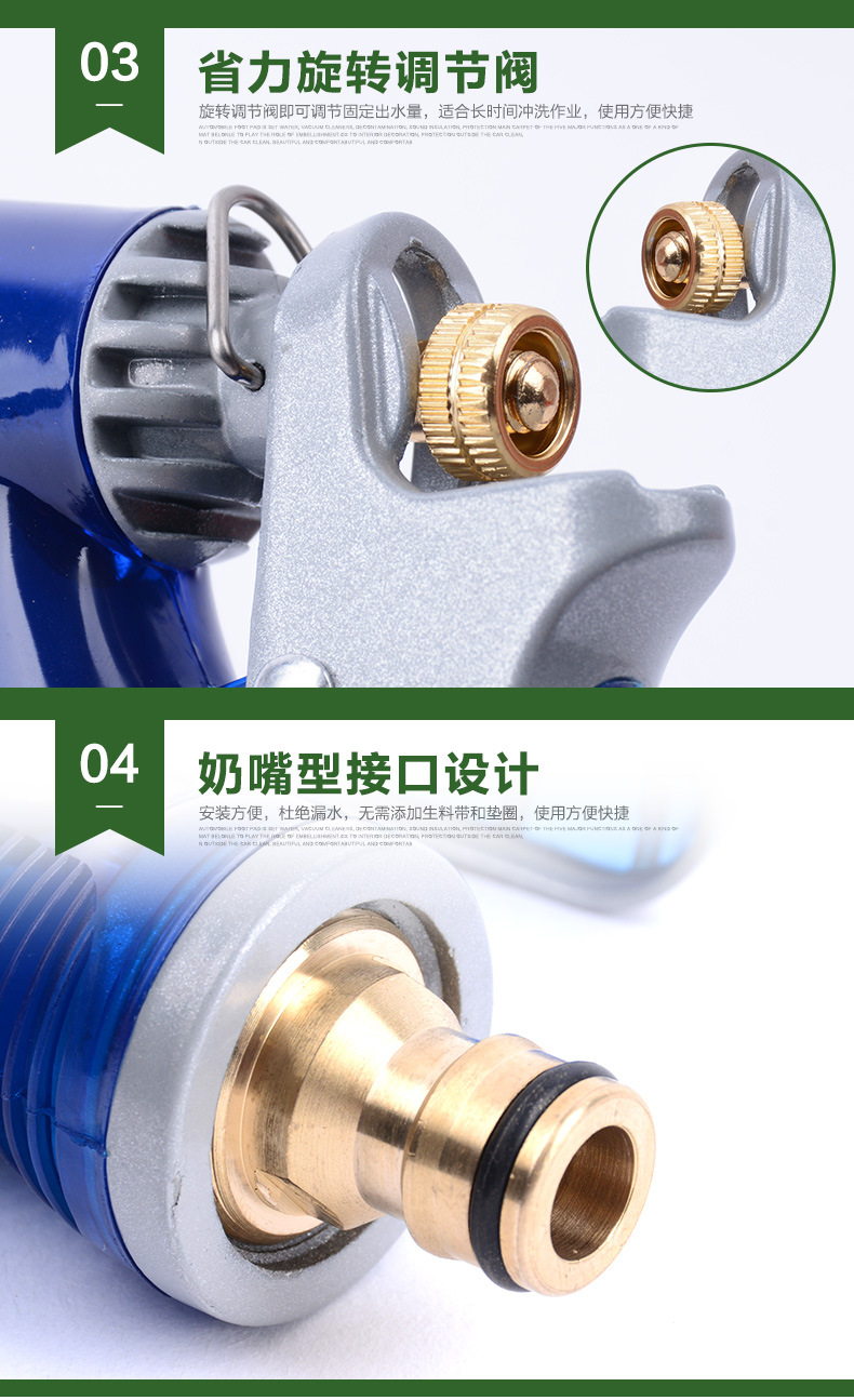 メーカーは家庭用亜鉛合金銅製洗車用ウォーターガン、乳首型ゴムコーティングされたシーブルー高圧ウォーターガンを供給しています。