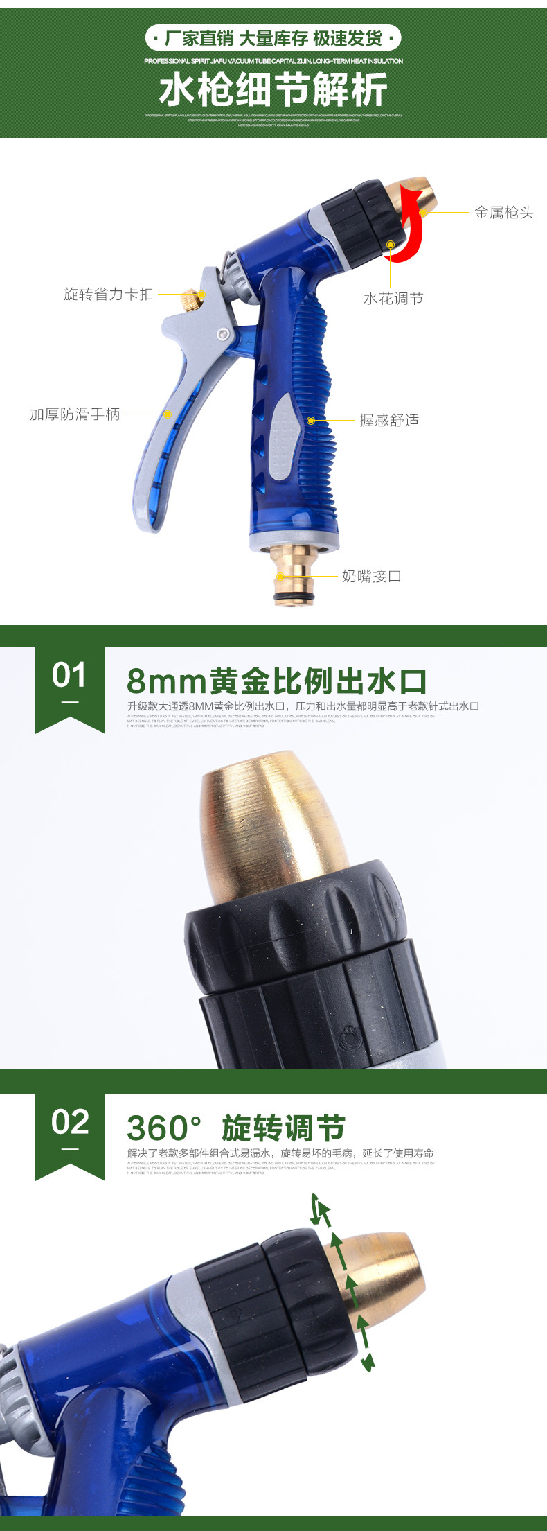 家庭用洗車高圧水鉄砲合金直噴ガンクイックセット銅メッキ直噴乳首水鉄砲メーカー