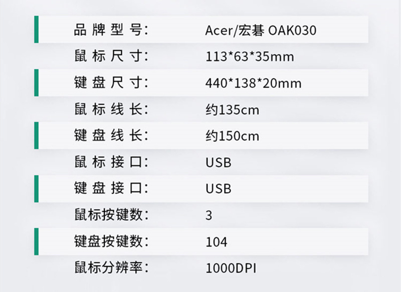 ACER/エイサー卸売 OAK030 コンピュータ USB キーボードとマウスセット オフィス ノートブック デスクトップ キーボード