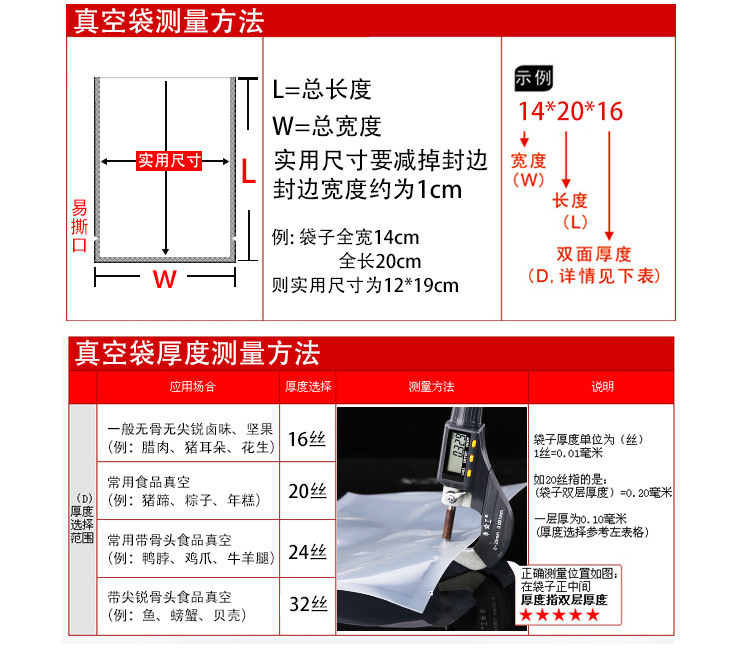 真空袋ナイロン食品包装袋三辺封16糸保存袋透明ビニール袋真空引き袋