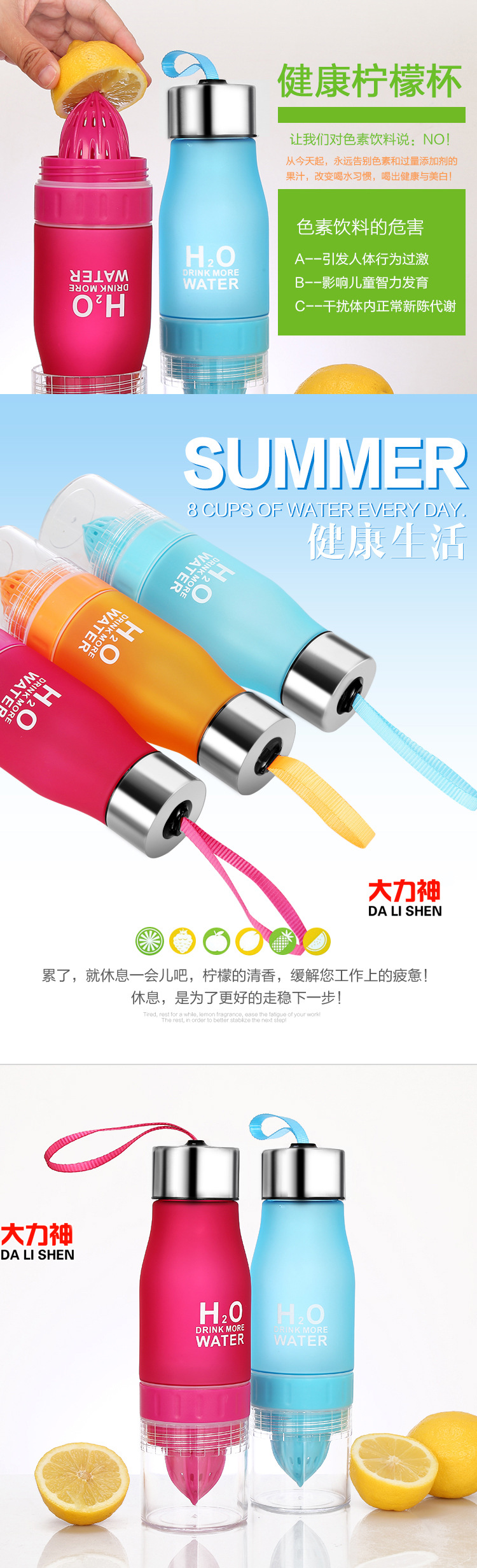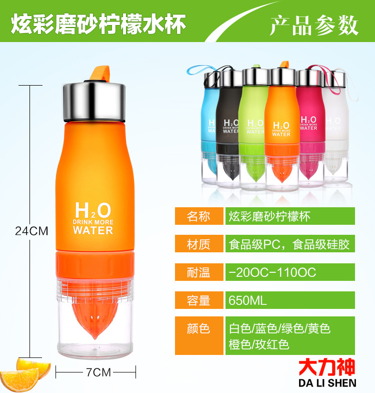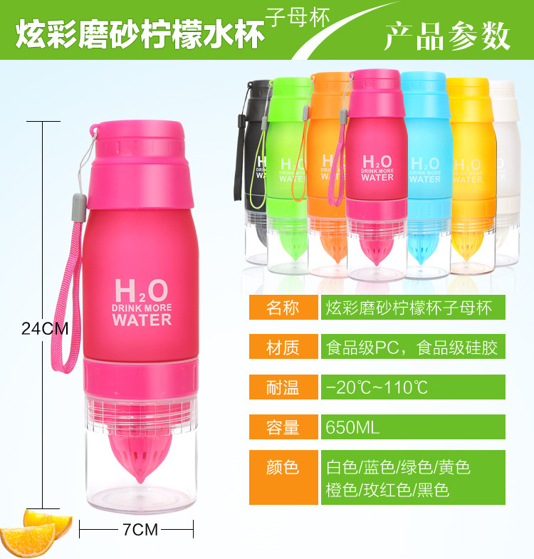 水の家の新型の七色のつや消しのプラスチックのレモンのコップの携帯する果物の花の杯の創意のジュースのコップの卸売り