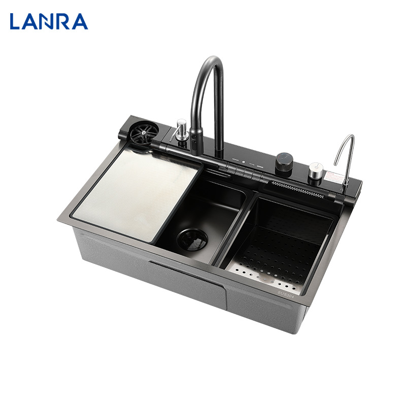 新しいシロナガスクジラアロワナ304ステンレス鋼キッチン大型シングルタンクピアノキーナノハニカムデジタルディスプレイ滝シンク