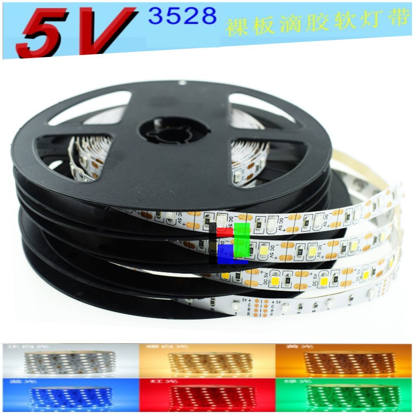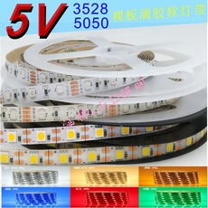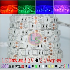 5050-5VLED灯带,输入电压为5V,使用安全,不会对人体造成伤害,单色每组为1灯,长度为1.66CM.七彩每组为3灯,长度为5CM。