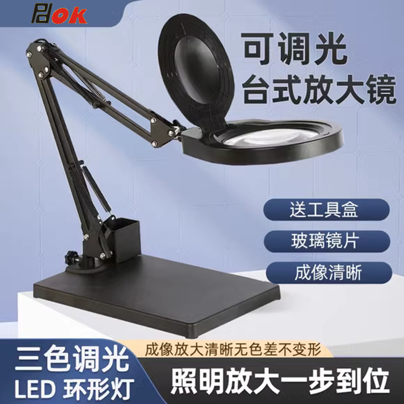 Pdokデスクトップ拡大鏡老人読書携帯電話修理溶接10倍高精細PD-032CT三色ランプ