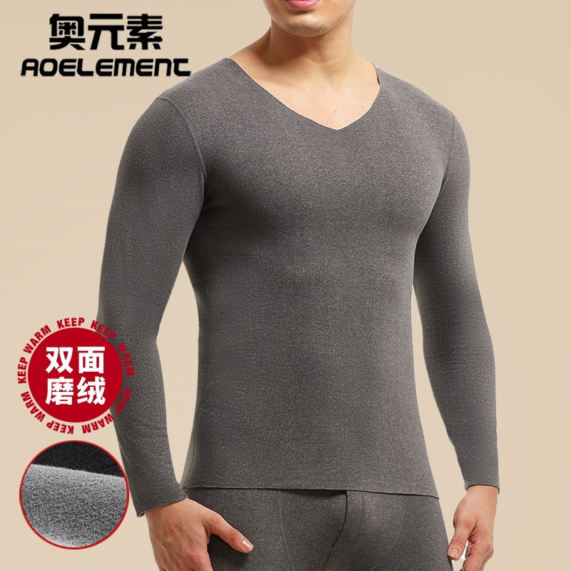 男性保温下着の薄い秋衣の底のシャツのvネックの1枚のベルベットの上着の2層のメーカーは秋冬を直接販売します。