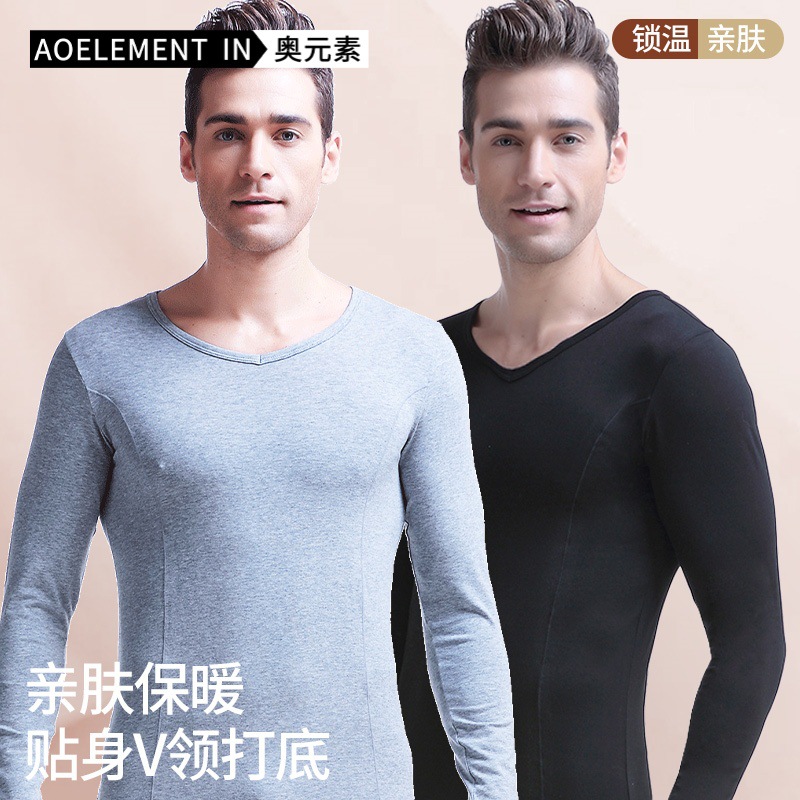 男士保暖内衣纯棉低领大领V领秋衣打底衫秋冬季纯色薄款修身上衣