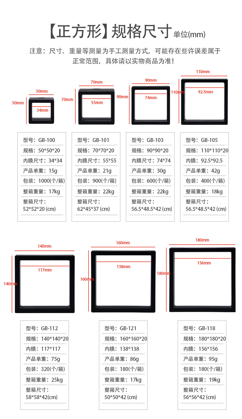 50*50ジュエリーフィルム懸濁包装箱ファッションアクセサリープレゼントプラスチック透明防塵フィルムケース