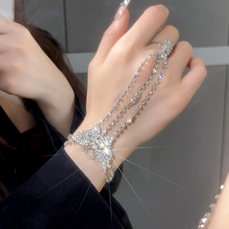 新型ファッションにダイヤモンドのブレスレットの指輪を入れて一体チェーンのラテンダンスの手の甲チェーンのファッションの女性がブレスレットを混ぜます。