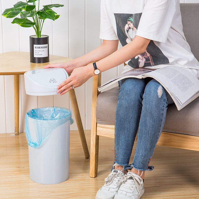 トランペット7.5l角型押し弾蓋分類回収ゴミ箱キッチンリビング家庭用プラスチック製衛生桶蓋付き