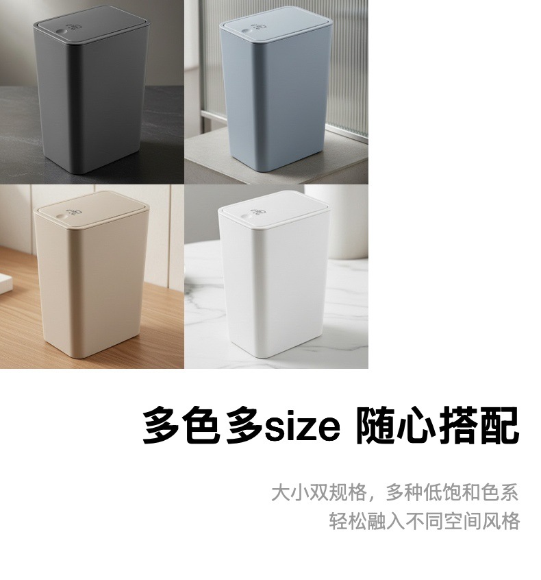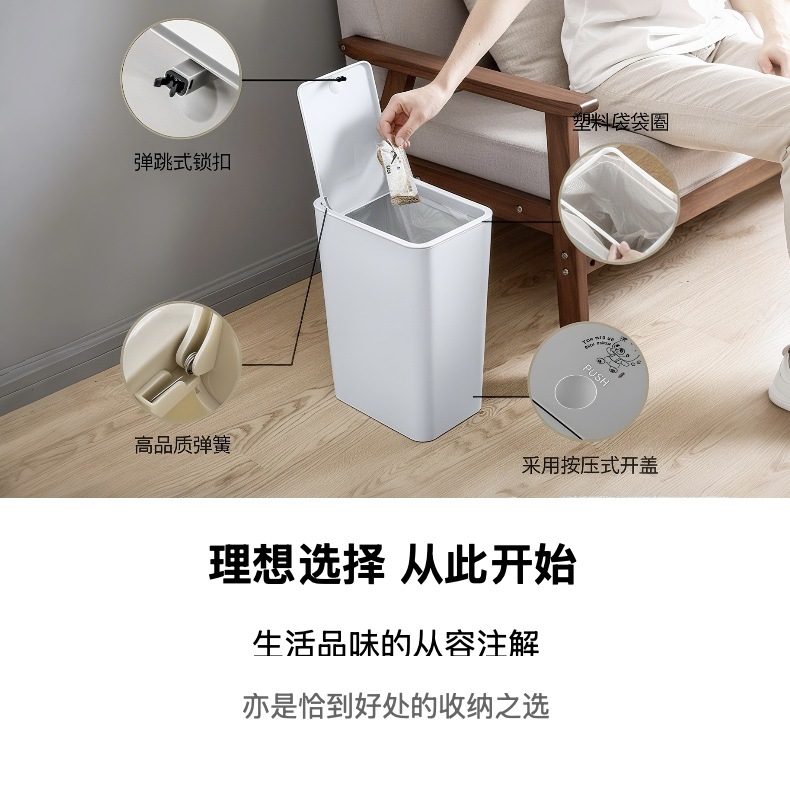 高颜值简约垃圾桶按压弹盖厨房卧室卫生间客厅室内家用垃圾桶带盖