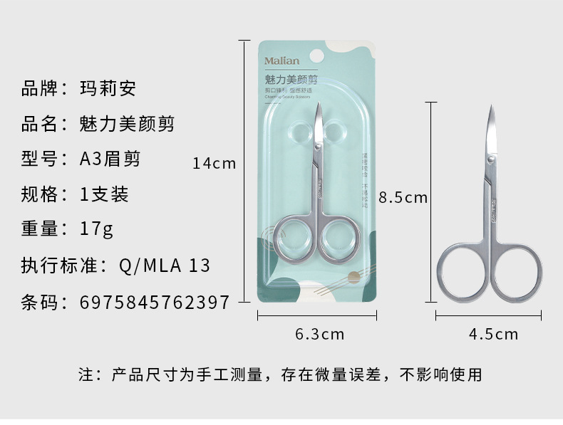 マリアンチャームビューティー眉毛はさみまつげはさみステンレス鋼美容ツールシャープアイ眉毛 A3 眉毛はさみ