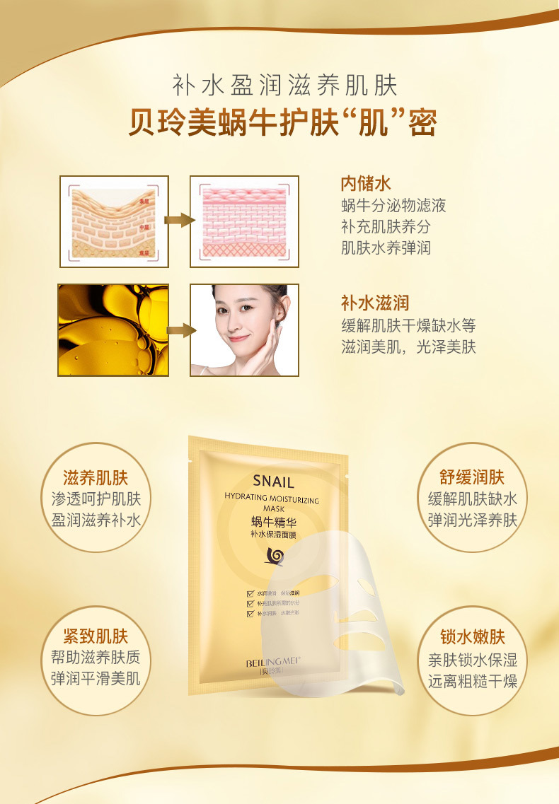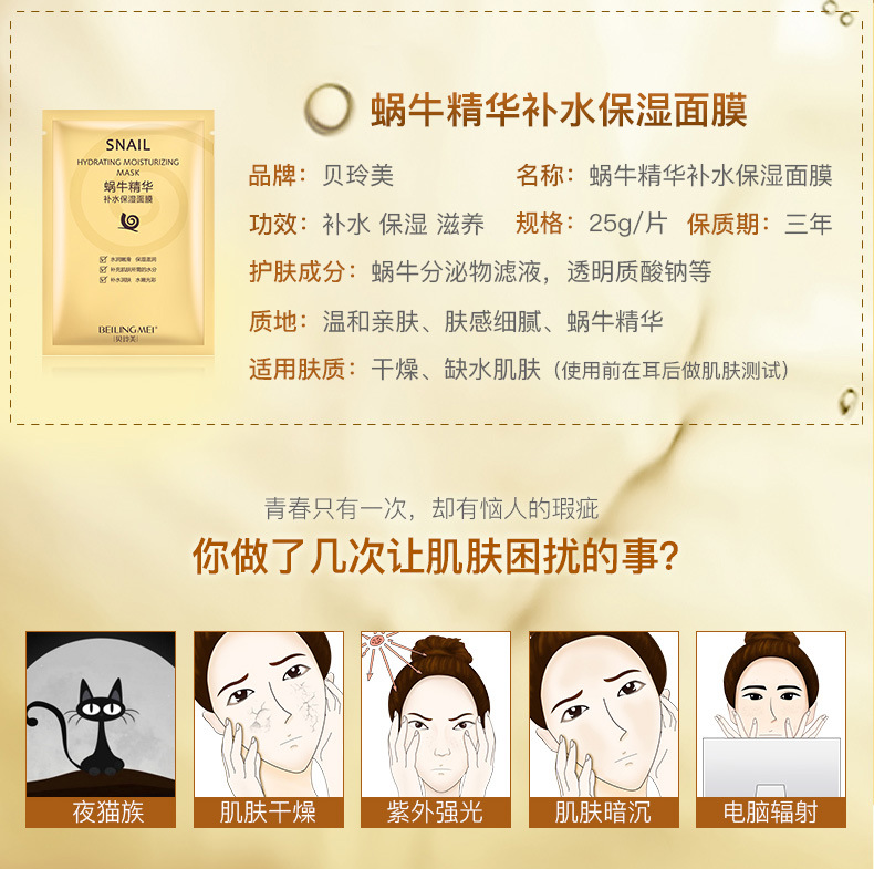 貝玲美カタツムリ精華浄顔潤肌黒マスク保湿補水マスク化粧品スキンケア品工場直売