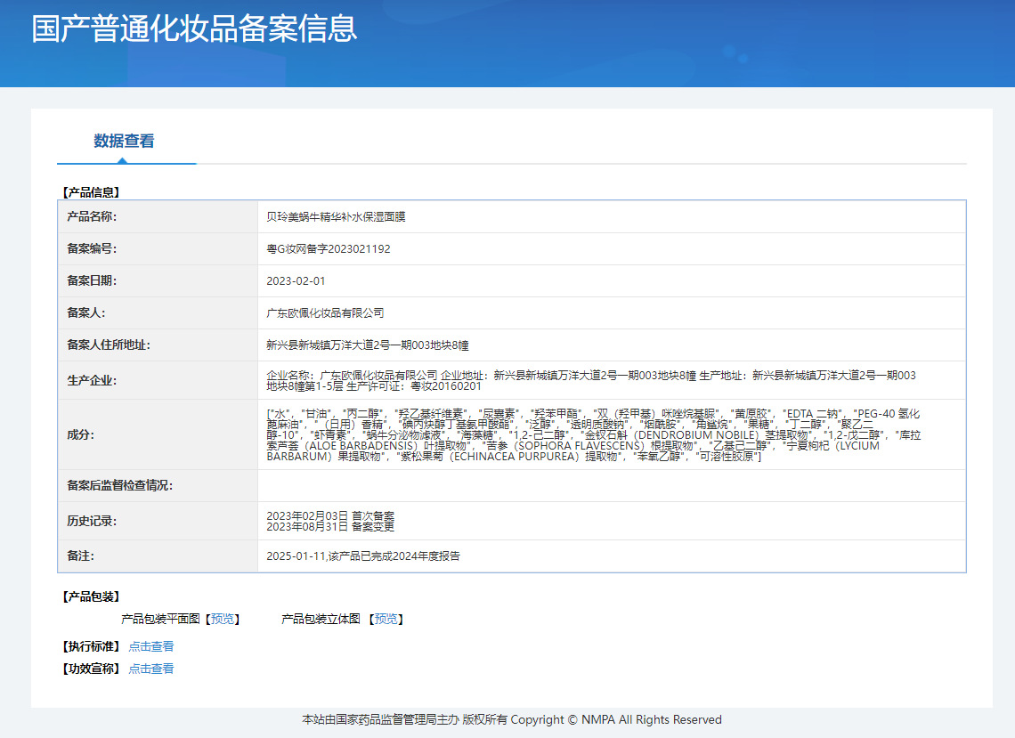 製品仕様 ベイリンメイ カタツムリ エッセンス ハイドレーティング マスク 25ml*1枚