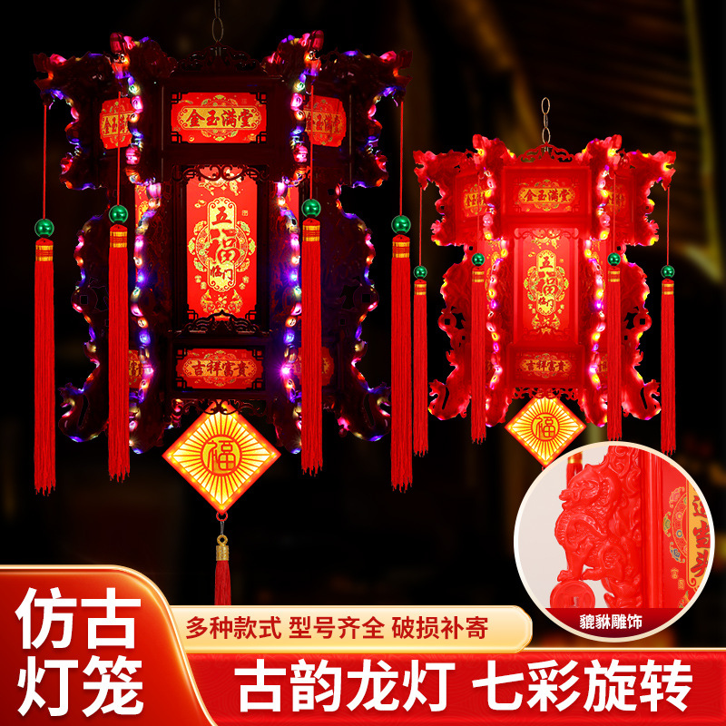七彩旋转中式仿古六角龙灯2026新款灯笼春节过年结婚阳台庭院宫灯