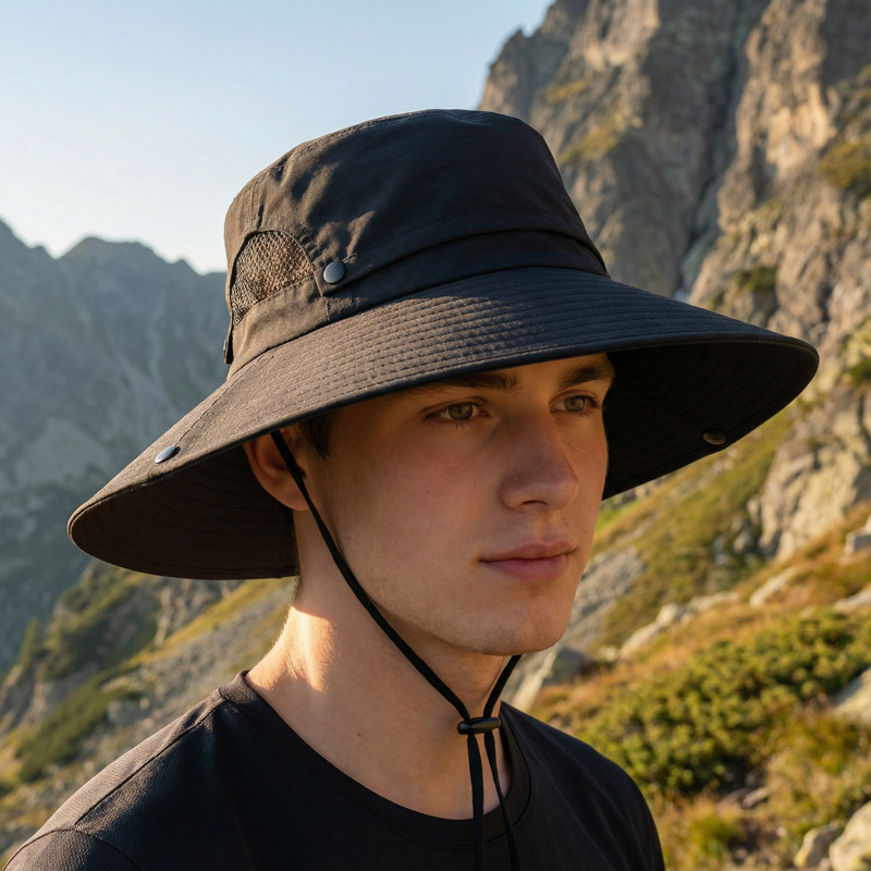 日系釣りひも漁師帽子太陽日よけ通気日焼け止め屋外登山釣り帽西部カウボーイ帽