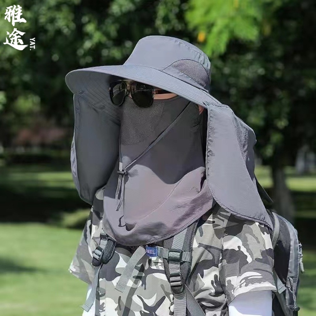 メンズ日焼け止め帽子行山釣り帽子アウトドア登山日よけ帽子顔隠し漁師帽子紫外線防止肩掛け帽子