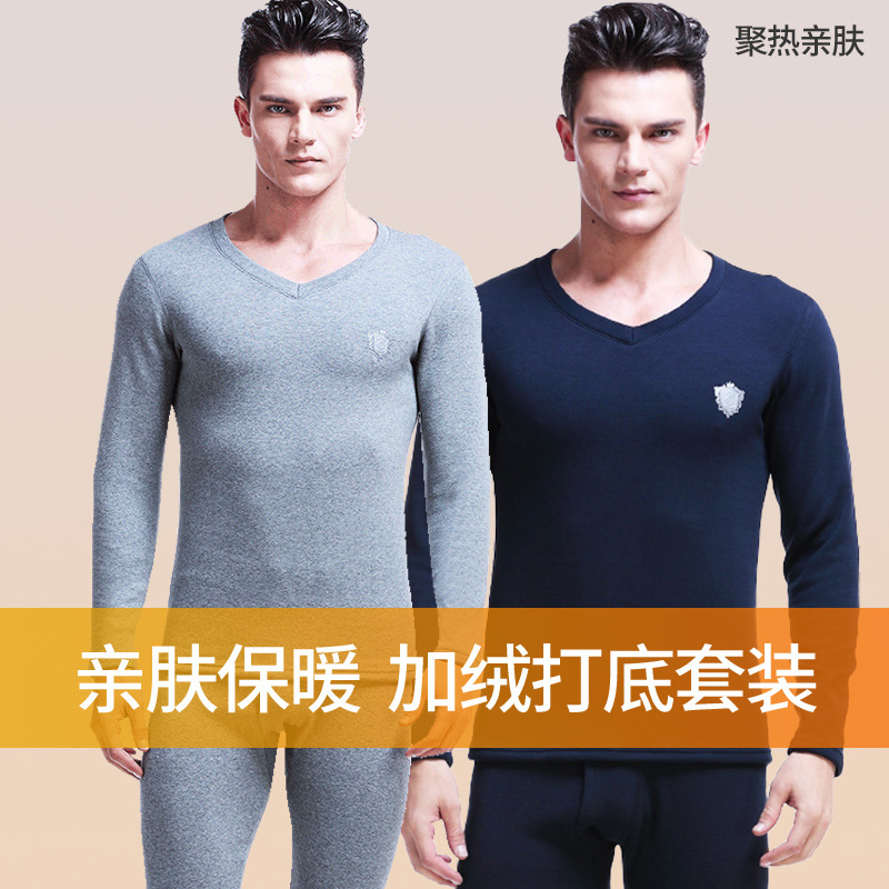 中青年男性保温スーツダウンせずベルベット厚手下着男冬二重秋衣秋ズボン修身男