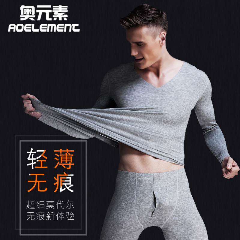 青年モーデール秋冬打底男性保温下着セット無痕ガードル秋衣秋ズボン薄手パンツ