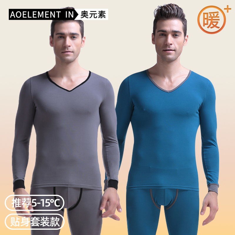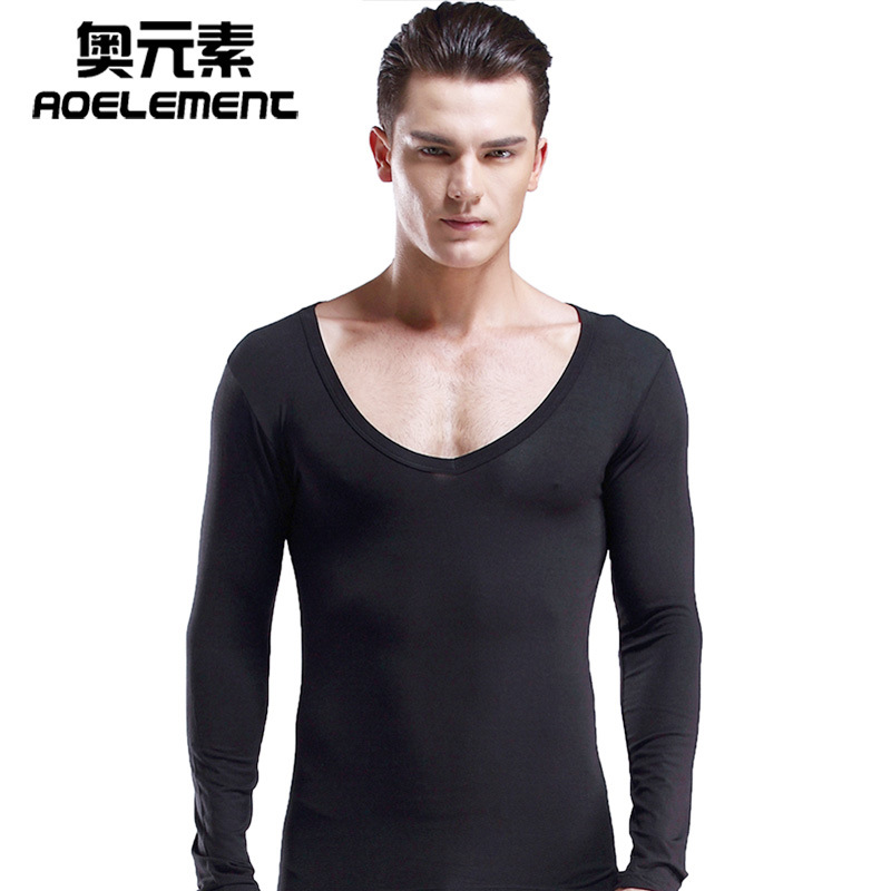 男性保温服大vネック保温下着一枚の薄い秋衣秋冬長袖底シャツ綿質上着