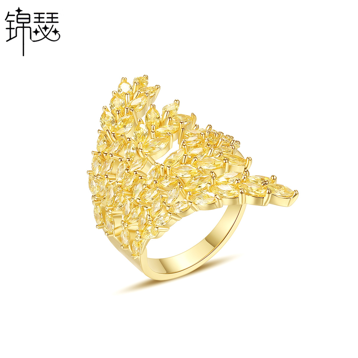 錦瑟の金色の麦の穂の指輪の女性の小衆の銅はジルコンを入れて口を開けます。