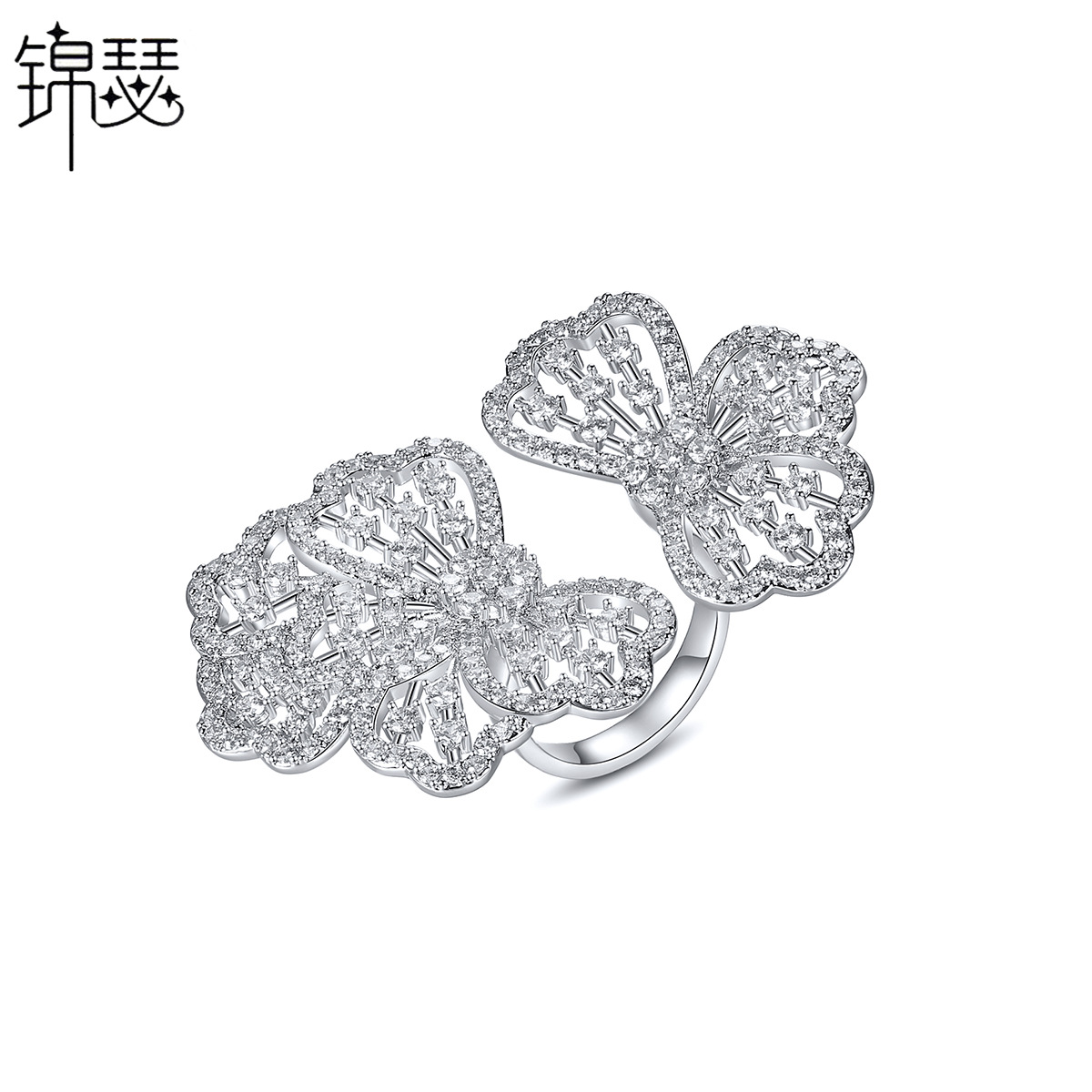 錦瑟は飛ぶことができる蝶の指輪の真鍮のマイクロはジルコンの指輪の欧米のハイエンドの百合の個性の首飾りの女性を入れます。