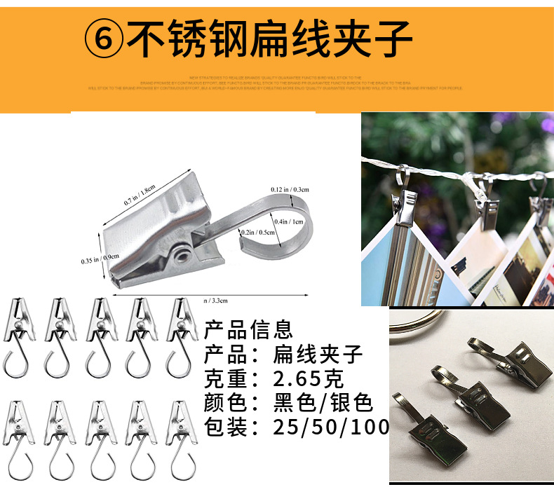 規格サイズ カーテンクリップ12*31mm長さ、鉄リング: 4x内30mm