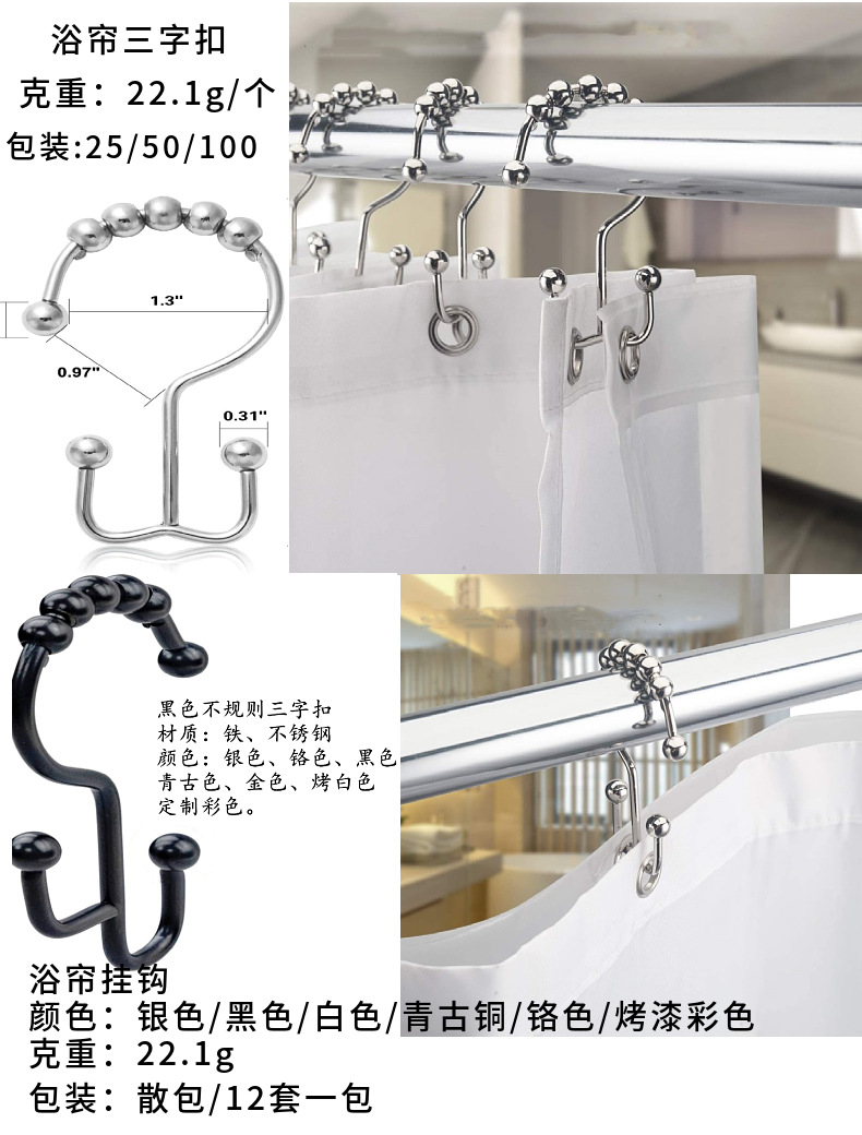 クロスボーダー人気吊り下げ式黒電気泳動鉄リングカーテンフック電気泳動カーテンクリップ電気泳動黒シャワーカーテンクリップ