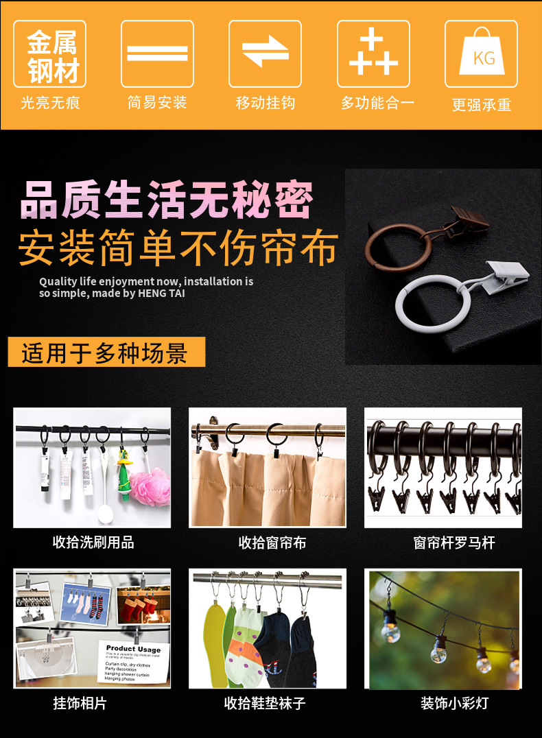 クロスボーダー直販カーテンフックカーテンフックカーテン部品カーテンクリップカーテンリング表面光沢