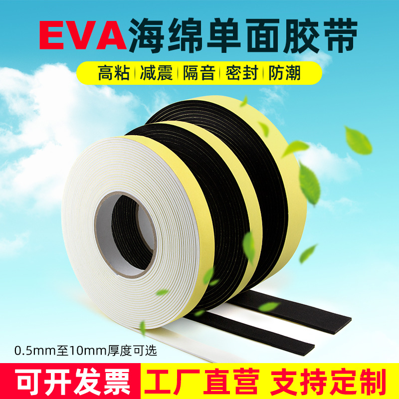 黒eva片面テープ包郵便耐高温防振防音強粘evaスポンジ発泡片面テープ
