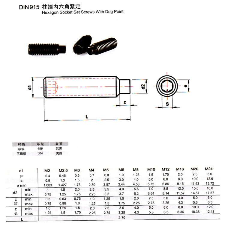 12.9級英美製凹端無頭内六角トップ糸din916/gb80杯尾締めねじ5/16-18