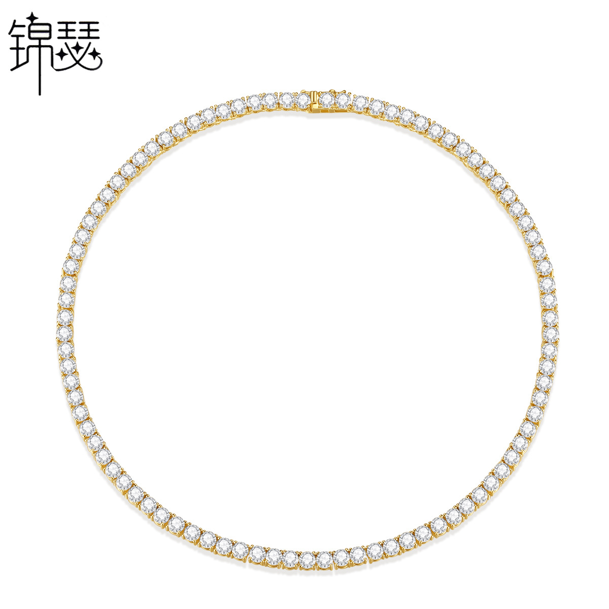 Jinse テニスフルダイヤモンドネックレスヨーロッパとアメリカのファッションヒップホップ男性と女性の同じスタイル 4 ミリメートルジルコン単列ロングネックレスドロップシッピング