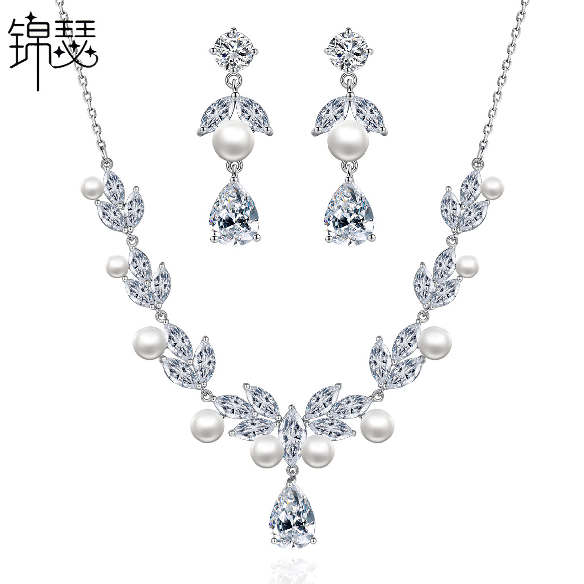 錦瑟の新型の新婦のチェーンの真鍮のジルコンの首のチェーンの欧米のファッションの風の晩餐会の百合の超フラッシュのアクセサリーの女性
