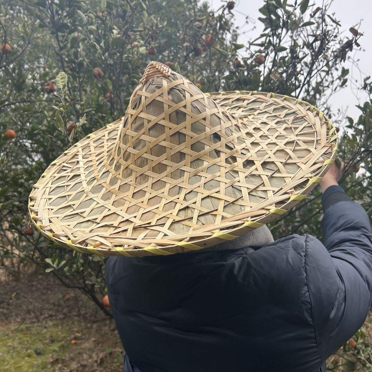 源産地メーカーの竹製三つ葉茶摘み用帽子、農園用日よけ雨よけ子供用大人用笠、パフォーマンス装飾用