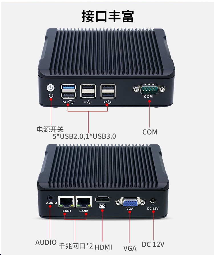 2 * lan,1 * usb3.0,5 * usb2.0,2 * com,1 * vga,1 * hdmi,1 * power