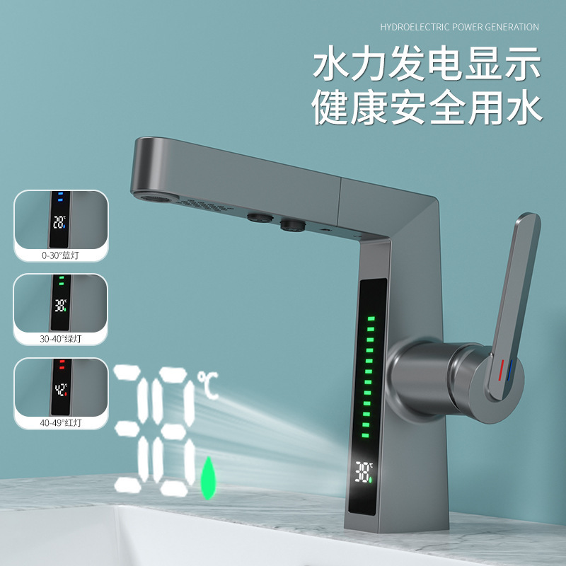 トイレのデジタル表示式の機能面の洗面器の浴室は冷熱の蛇口の2つの蛇口の洗面器を引き出します。