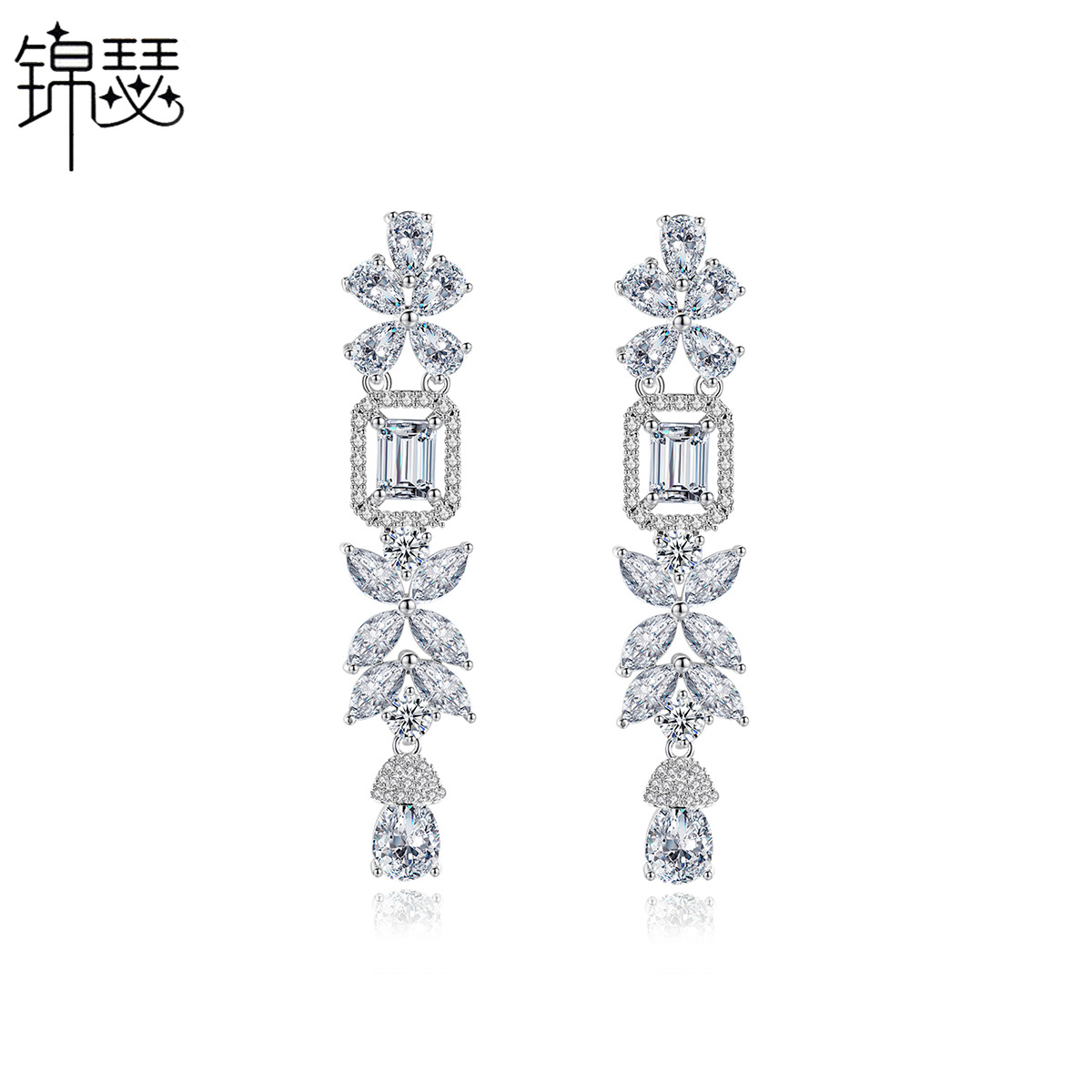 錦瑟ジルコン花嫁ピアス真 � � メッキファッション気質宴会欧米風イヤリング大気女子耳飾り