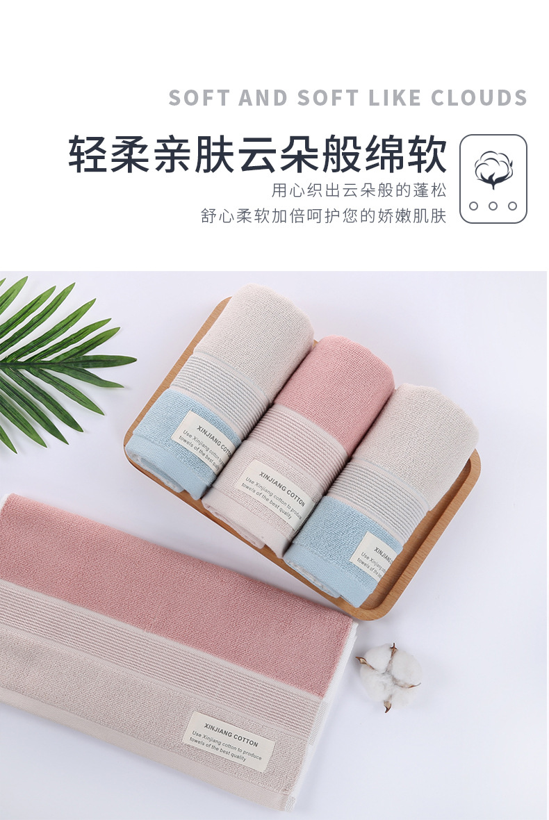 純綿七色タオルバスタオルセット厚手吸水プレゼント無地断段綿バスタオル三点セットギフトボックス