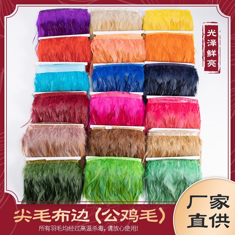 工場直販 カラフルな雄鶏の尖った羽根布、雄鶏の羽根飾り、羽根縁飾り、尾羽布、手作り服飾材料