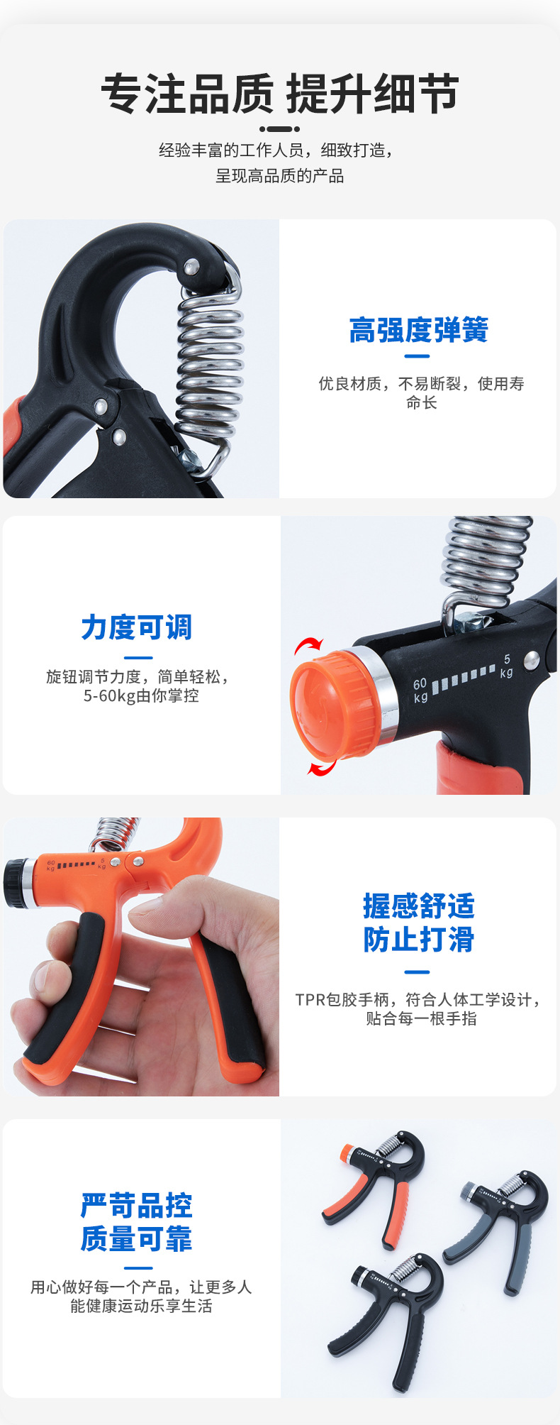 握力器5-60kg可调节成人手劲锻炼器手指手腕康复训练便携健身器材