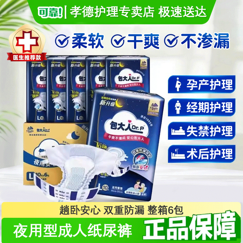 包大人夜用成人纸尿裤基础型老年男女产妇成人尿不湿M/L/XL码10片