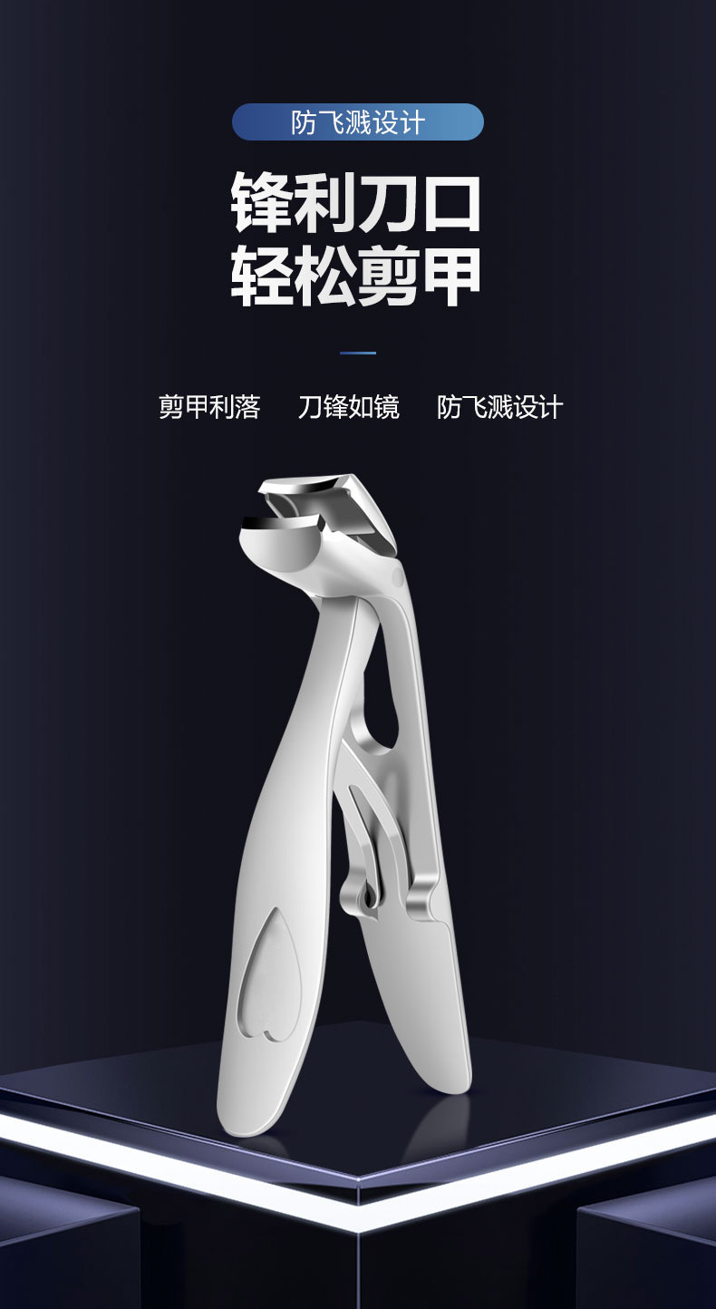 弯头大开口指甲钳单个大号家用款防飞溅指甲剪不锈钢指甲刀批发厂