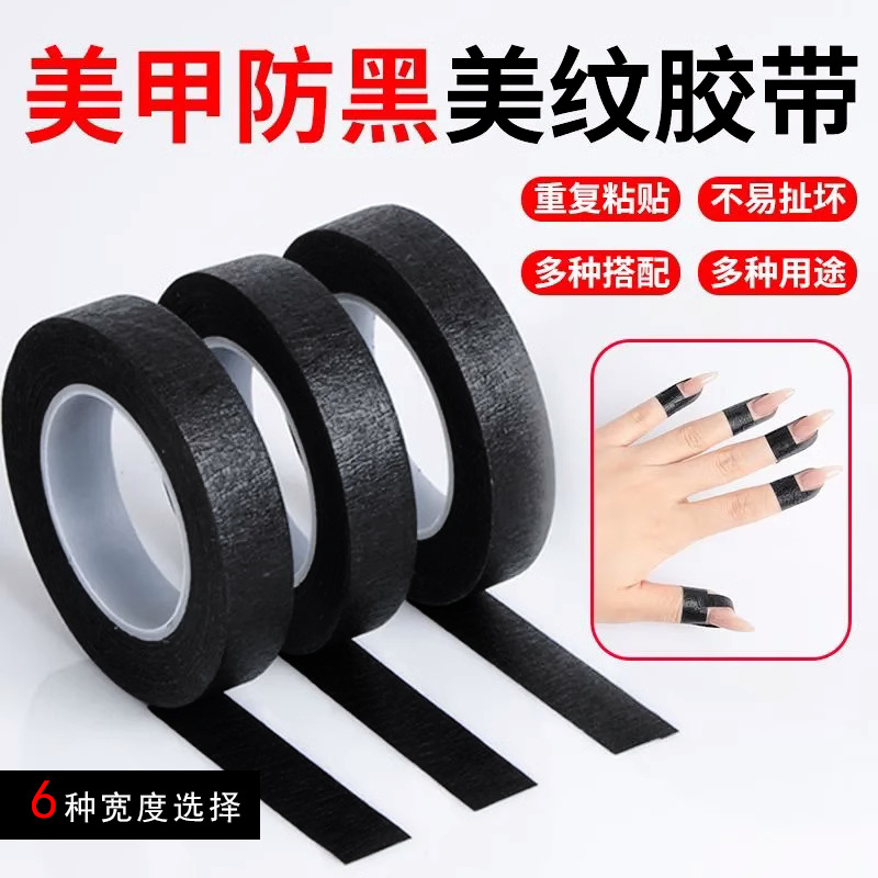 黑色美纹纸胶带美甲工具不透光物理防照黑可手撕做指甲黑胶带批发