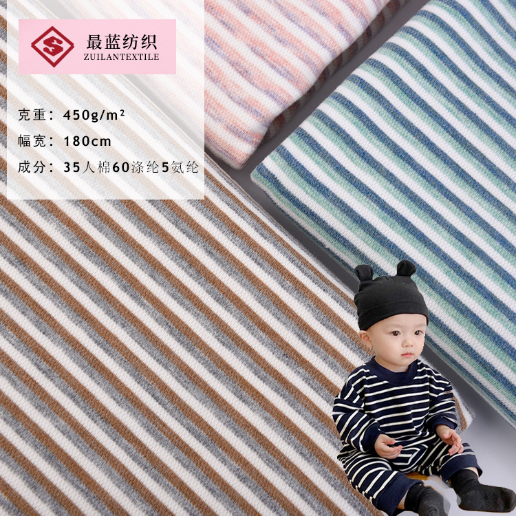 新型メーカー天然保温縞乳幼児パジャマ生地天然ベルベット家庭服生地