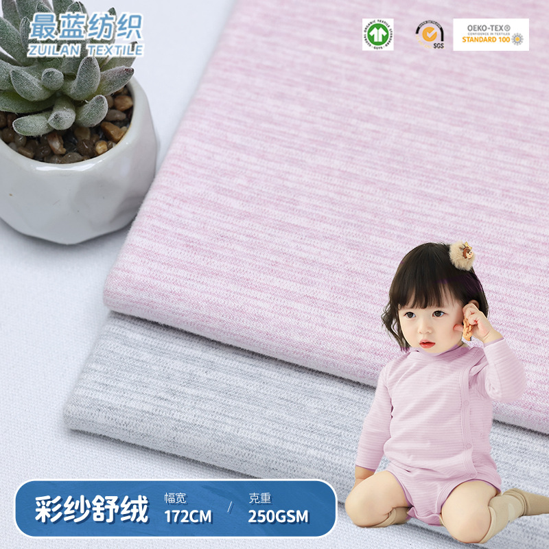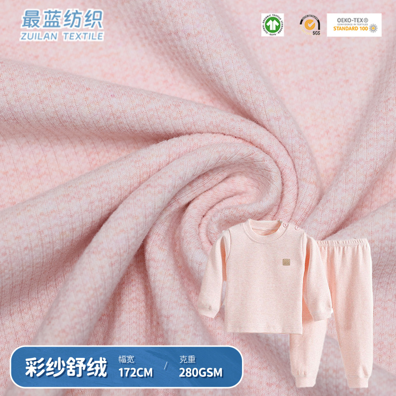 源头厂家 彩棉舒绒弹力针织面料 婴童保暖衣睡衣帽子家居服布料