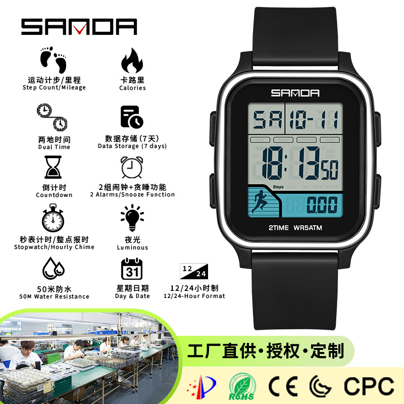 | 材质 | 进口PC表壳,硅胶表带,加厚加硬树脂镜面,不锈钢底盖,不锈钢扣 |