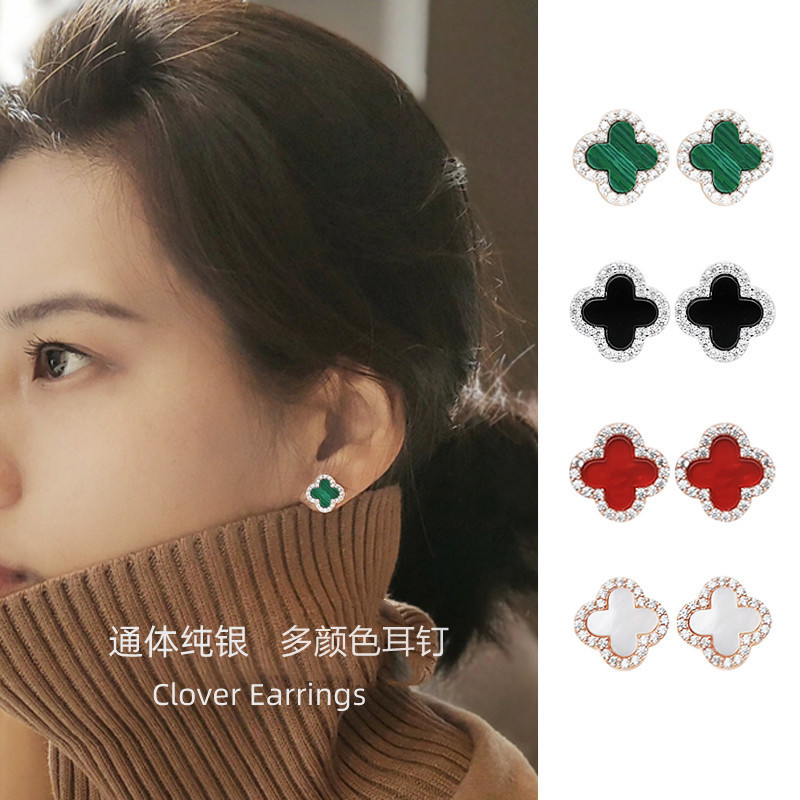 韩版玛瑙四叶草耳钉女简约网红耳环时尚ins气质百搭耳饰纯银批发