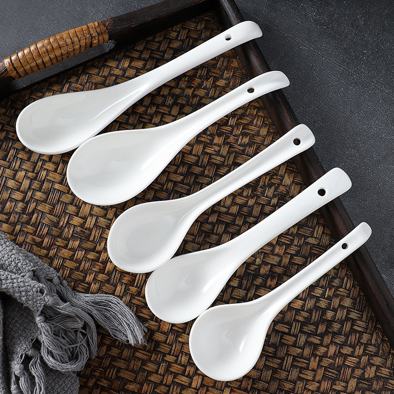 家庭用穴なしセラミックスプーン純白ホテルレストランスプーン北欧シンプルなスプーン